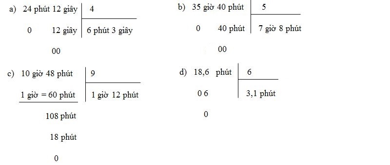 Đối với dạng bài tập phép tính chia của các số có đơn vị đo thời gian, các em chỉ cần thực hiện theo các bước như sau: