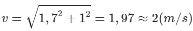 Ví dụ: 1 vận động viên bơi về phía Bắc với vận tốc 1.7m/s, nước sông chảy với vận tốc 1m/s về phía Đông. Tìm độ lớn và hướng vận tốc tổng hợp của VĐV.