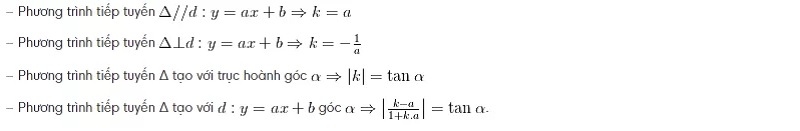 Lưu ý: Hệ số góc k = y'(x0 ) của tiếp tuyến Δ thường cho kiểu gián tiếp như sau: