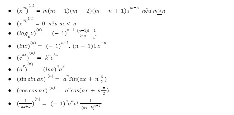 Đối với các bài tập đạo hàm cấp cao thường thiên về tính đạo hàm cấp 2 trở lên, nên mọi người có thể áp dụng các công thức đạo hàm cấp cao trên hoặc y(n) = (y(n-1))’.