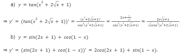 Bài tập 3: Tính đạo hàm của những hàm số sau: