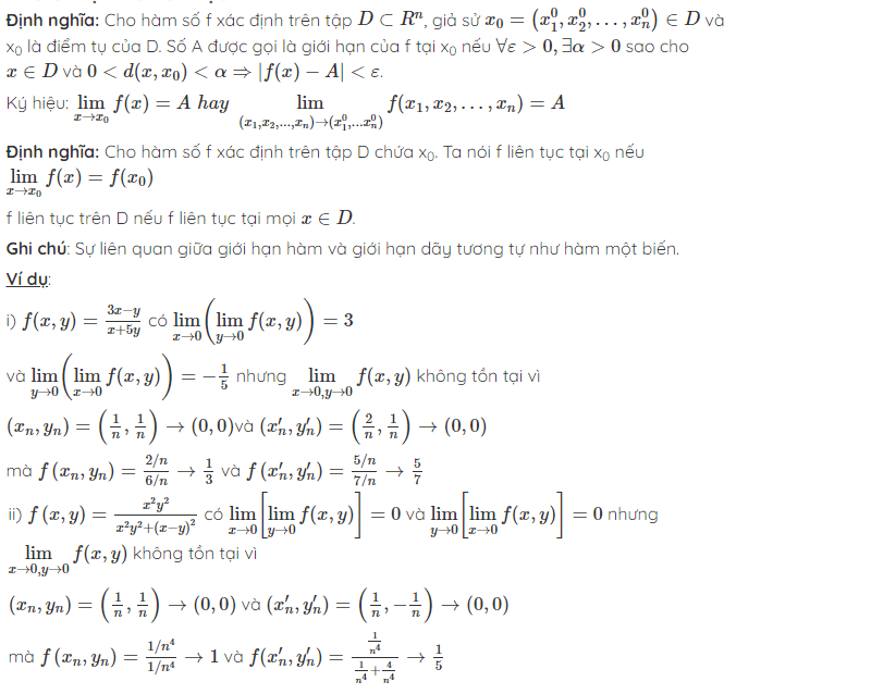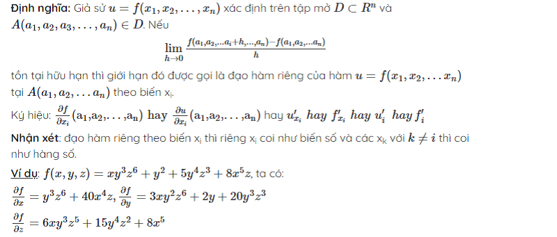 Vậy nên, dưới đây là những công thức các dạng đạo hàm của hàm số nhiều biến để các em có thể làm quen và áp dụng: