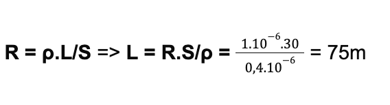 b) Rb max = 30Ω, dây nikelin ρ = 0,4.10-6Ω.m, S = 1mm2 = 1.10-6m2, l = ?