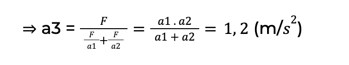 Câu 9: Lực F truyền cho vật khối lượng m1 gia tốc a1 = 2m/s^2, truyền cho vật khối lượng m2 gia tốc a2 = 3m/s^2. Hỏi lực F sẽ truyền cho vật có khối lượng m3 = m1 + m2 gia tốc là bao nhiêu?
