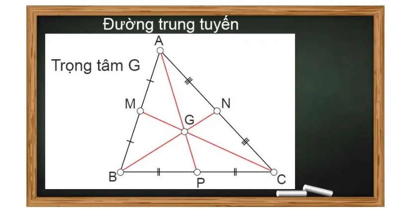 Đường trung tuyến: Đường thẳng nối một đỉnh với trung điểm của cạnh đối diện nó. Nên trong 1 hình tam giác sẽ có 3 đường trung tuyền và chúng giao nhau tại 1 điểm.