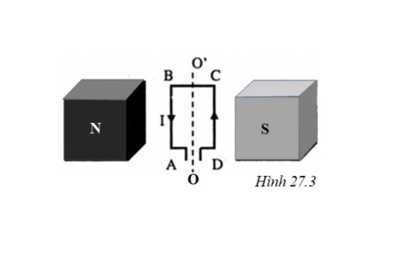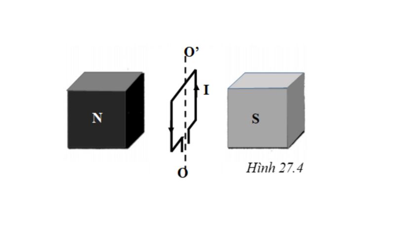 Bài 4 (Trang 62 SBT): Hình 27.4 SBT mô tả một khung dây dẫn đứng yên trong từ trường, mặt của khung vuông góc với đường sức từ. Nếu đổi chiều dòng điện chạy trong khung thì khung dây có quay không? Giải thích?