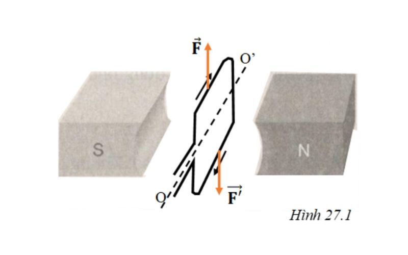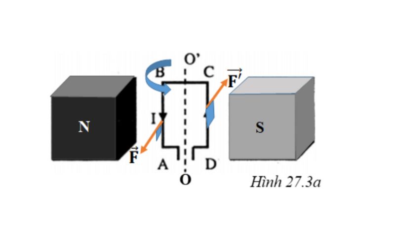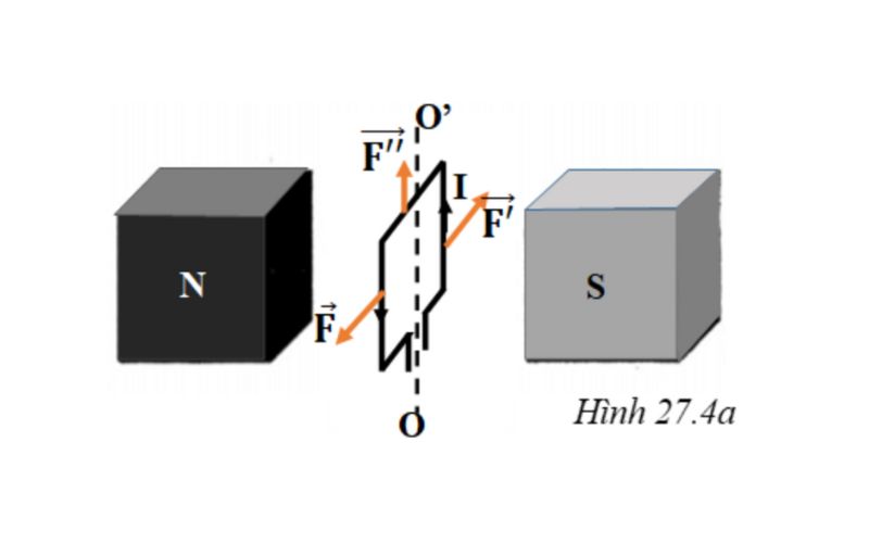 Khi mặt phẳng của khung dây vuông góc với đường sức từ thì lực từ tác dụng lên các cạnh của khung dây sẽ nằm trong mặt phẳng khung dây và vuông góc với các cạnh. Vì vậy các lực này có tác dụng kéo căng khung dây như hình 27.4a.