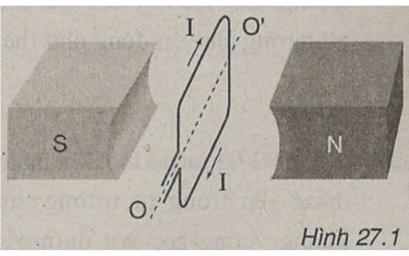 Bài 1 (Trang 61 SBT): Hình 27.1 SBT mô tả khung dây có dòng điện chạy qua được trong từ trường, trong đó khung quay đang có vị trí mà mặt phẳng khi vuông góc với đường sức từ. Về vị trí này của khung dây, ý kiến nào dưới đây là đúng?