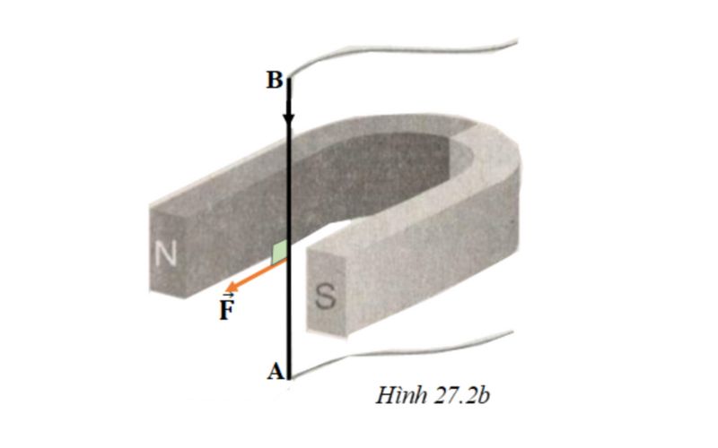 Nếu đổi chiều dòng điện hoặc đổi cực của nam châm thì lực điện có chiều đi từ ngoài vào trong lòng nam châm (hình 27.2b).