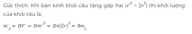 Câu 3: Hai khối cầu giống nhau được đặt sao cho tâm cách nhau khoảng r thì lực hấp dẫn giữa chúng là F. Nếu thay một trong hai khối cầu trên bằng một khối cầu đồng chất khác nhưng có bán kính lớn gấp hai, vẫn giữ nguyên khoảng cách giữa hai tâm (hai khối cầu không chạm nhau) thì lực hấp dẫn giữa chùng lúc này bằng bao nhiêu?