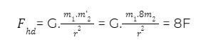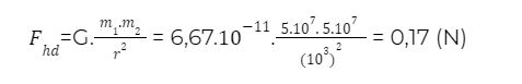 Giữ nguyên khoảng cách giữa hai tâm (hai khối cầu không chạm nhau) thì lực hấp dẫn giữa chúng lúc này là:
