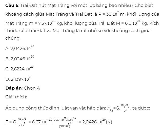 Giải thích: Áp dụng công thức định luật vạn vật hấp dẫn