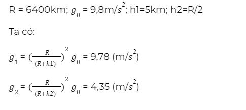Câu 8: Bán kính Trái Đất là 6400km, gia tốc trọng trường ở mặt đất là 9,80 m/s^2. Tính gia tốc trọng trường ở độ cao 5km và ở độ cao bằng nửa bán kính Trái Đất.