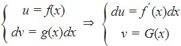 ∫f(x).g(x)dx=f(x).G(x)−∫G(x).f′(x)dx.