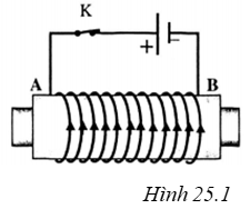 Giải thích chi tiết: Trong lòng một ống dây có dòng điện một chiều chạy qua có từ trường. Khi đặt thanh thép vào thì thanh thép sẽ bị nhiễm từ tính và trở thành một nam châm. (Áp dụng lý thuyết: Các vật liệu từ đặt trong từ trường đều bị nhiễm từ.)