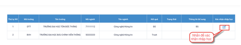 Xác nhận nhập học trực tuyến: Tất cả thí sinh phải xác nhận nhập học bằng hình thức trực tuyến trên hệ thống, trước khi nhập học chính thức tại trường.