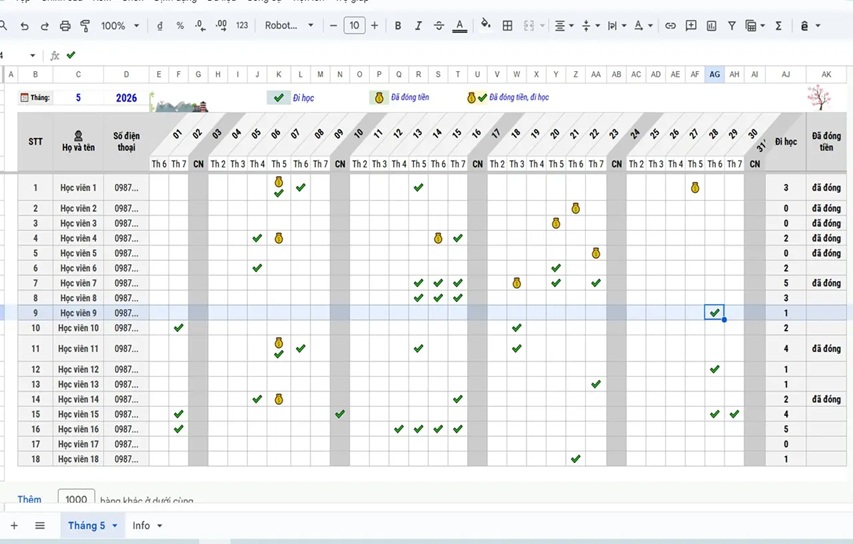 Thống nhất ký hiệu điểm danh (ví dụ: “x” – đi học, “P” – phép, “K” – không phép, “M” – đi muộn). Điều này giúp file rõ ràng và dễ tổng hợp hơn.