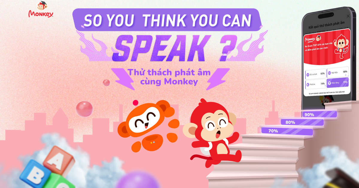 Lần đầu tiên, một thử thách phát âm chính thức 'trình làng' ngay trong Siêu ứng dụng Monkey Junior! 'So you think you can speak?' như một lời 'thách thức' các bé thử tài phát âm và 'khoe' những điểm...