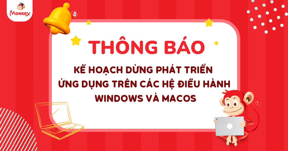 Thân gửi ba mẹ, Monkey thông báo về kế hoạch dừng phát triển trên nền tảng Windows và MacOS với các ứng dụng Monkey Junior, Monkey Stories, Monkey Math và VMonkey.