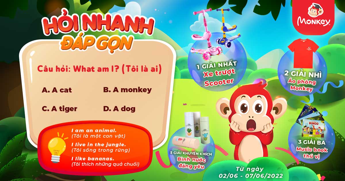Thử thách sự am hiểu và thông thạo của ba mẹ và các bạn nhỏ khi tham gia chương trình Hỏi nhanh - Đáp gọn. Trả lời câu hỏi từ chương trình tại fanpage Monkey Việt Nam để có cơ...