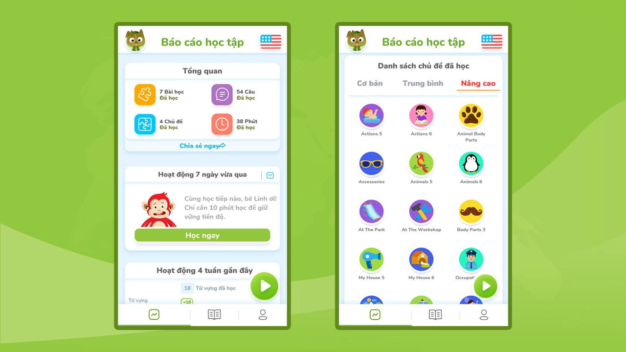Báo cáo học tập là một "trợ thủ đắc lực" cho ba mẹ trong việc cập nhật tiến độ, tình hình học tập của con. Bên cạnh đó cũng là công cụ giúp phụ huynh duy trì đều đặn lịch học và nắm bắt kịp thời kết quả của trẻ. Điều này chính là chìa khóa duy trì việc học đều đặn hằng ngày. Các chuyên gia của Monkey đã chỉ ra rằng mỗi 10 phút học mỗi ngày tương đương với 1 bài học, trẻ sẽ có thể thuộc 1.000 từ vựng mỗi năm. Việc duy trì đều đặn sẽ giúp trẻ học hiệu quả và hoàn thành chương trình học đúng thời hạn.