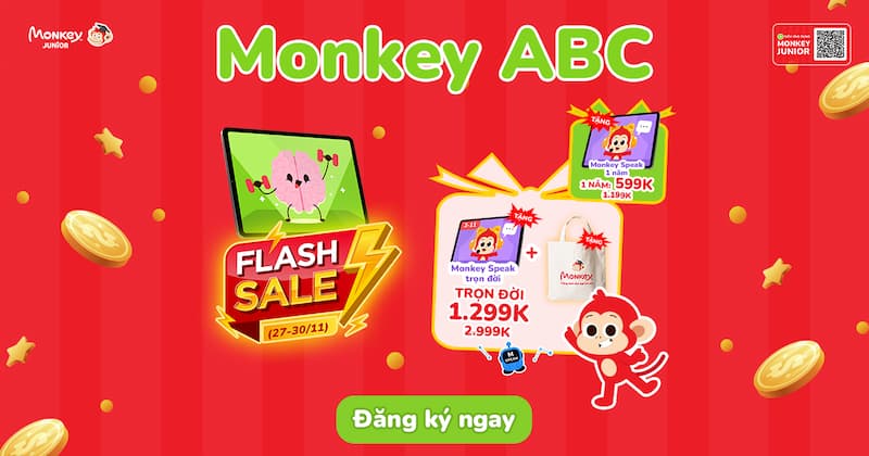 Từ 27/11/2023 - 30/11/2023, ba mẹ có cơ hội săn sale khóa học Monkey ABC - Monkey Stories chỉ với 50% giá trị khóa học! Nhanh tay chớp deal ngay!