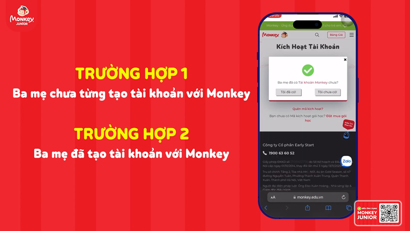 Như vậy, Monkey đã hướng dẫn ba mẹ kích hoạt thành công tài khoản cho cả 3 hình thức. Mọi thắc mắc cần giải đáp ba mẹ hãy liên hệ hotline 1900 6360 52 hoặc gửi tin nhắn tới Zalo Monkey Việt Nam để được Monkey hỗ trợ nhanh nhất nhé! Xin chân thành cảm ơn vì đã đồng hành cùng Monkey!
