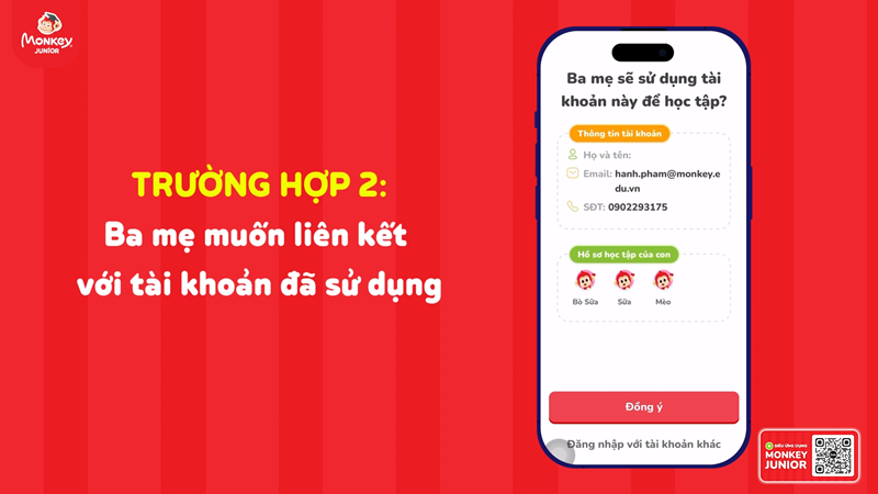 Trường hợp 1: Ba mẹ chưa từng tạo tài khoản với Monkey