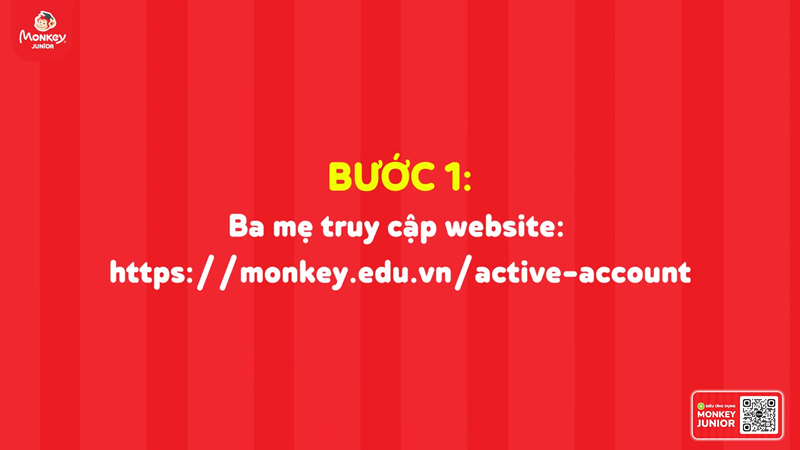 Bước 1: Ba mẹ truy cập đường link kích hoạt tài khoản của Monkey.