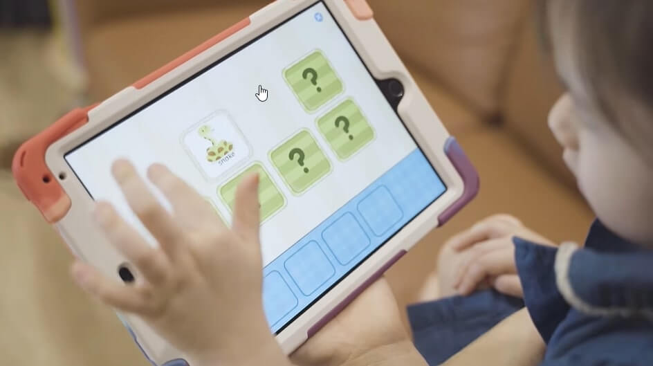 Con gái Lan Phương đang rất hào hứng khi được học tiếng Anh cùng Monkey Stories. (Ảnh: Chụp màn hình)